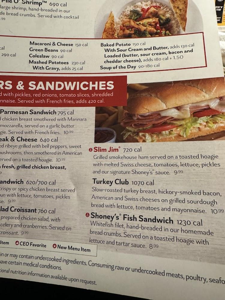 Shoney's menu offers a delightful assortment of American classics designed for everyone. Breakfast items include bacon, eggs, fluffy pancakes, and those famous French toast sticks. Lunch and dinner feature a broad range, from hand-breaded chicken strips to the All American Burger. The Fresh Food Bar allows diners to customize their plates, featuring fresh salads, soups, and sides. The menu also boasts an array of desserts like Christy's Apple PieTM and the rich Skillet Cookie. Overall, the offerings at Shoney's are delicious, varied, and have something for every palate, making it an essential consideration for any local dining list.